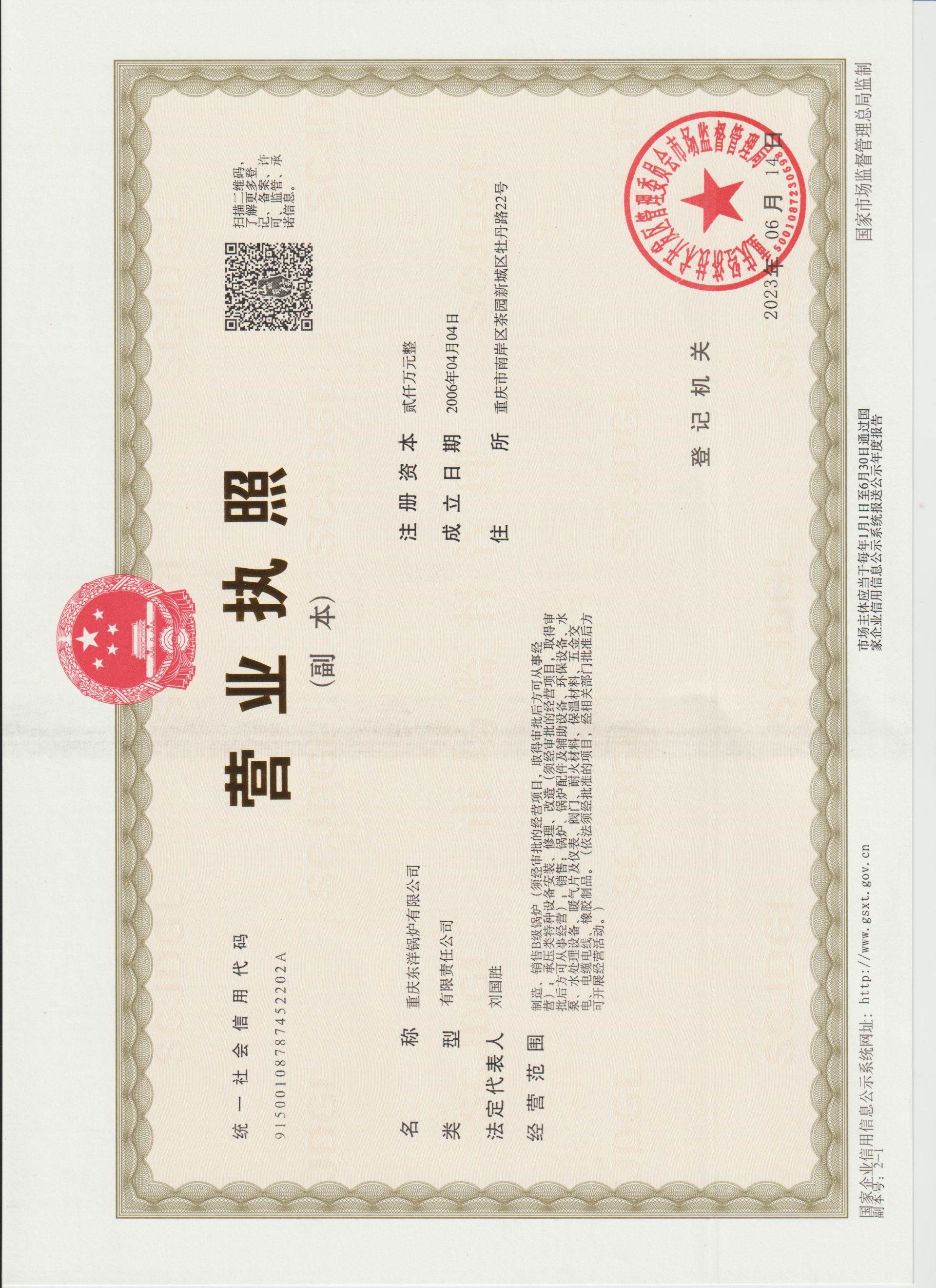 新營業執照(三證合一)副本